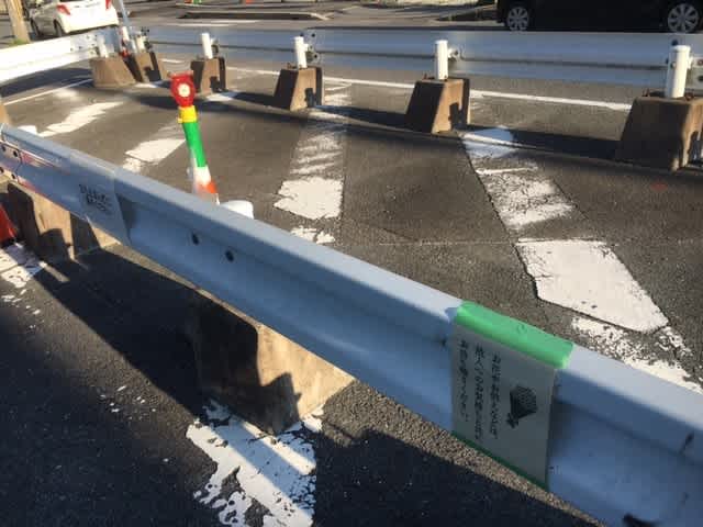 ガードレールには「お花やお供えなどは、故人へのお気持ちと共にお持ち帰りください」