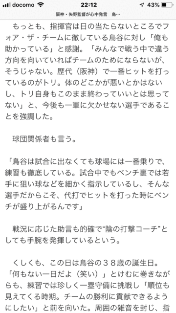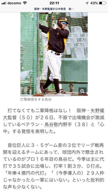 それでも鳥谷の練習量は半端なく凄く、若手の選手の面倒見も人一倍だと聞きます。